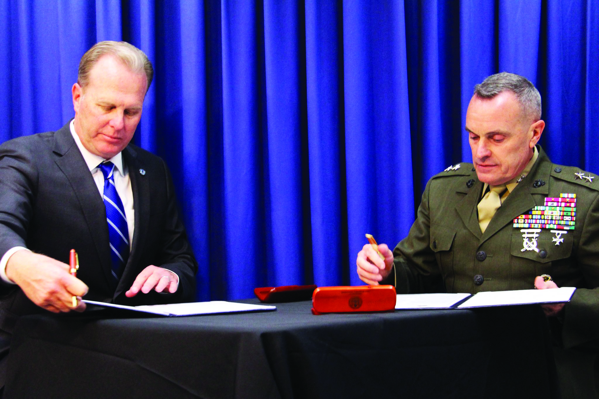 <p>Continuing the strong tradition of partnership between the City of San Diego and the U.S. military, Mayor Kevin L. Faulconer and Marine Corps Maj. Gen. Vincent A. Coglianese signed a new Memorandum of Understanding (MOU) between their organizations to work together on “Smart City” technologies such as unmanned aircraft systems (UAS), smart street lights, renewable energy and the City’s Get It Done application.</p>