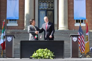 La firma se realizó en una ceremonia celebrada en las escaleras de la histórica Casa de la Cultura de Tijuana este lunes 13 de marzo. La ceremonia incluyó la presencia del cónsul general del Consulado de Estados Unidos en Tijuana William A. Ostick, la cónsul general del Consulado de México en San Diego Marcela Celorio, y de líderes de la comunidad de ambos lados de la frontera.<br>