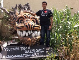 <figure id="attachment_41089" aria-describedby="caption-attachment-41089" style="width: 388px" class="wp-caption alignleft"><a href="https://cms.laprensa.org/sites/default/files/2017/07/IMG_0466-768x588.j… loading="lazy" class="wp-image-41089" src="https://cms.laprensa.org/sites/default/files/2017/07/IMG_0466-768x588.j…; alt="" width="388" height="297" srcset="https://cms.laprensa.org/sites/default/files/2017/07/IMG_0466-768x588.j… 768w, https://cms.laprensa.org/sites/default/files/2017/07/IMG_0466-768x588-3… 300w" sizes="(max-width: 388px) 100vw, 388px"></a><figcaption id="caption-attachment-41089" class="wp-caption-text">Cesar Castañeda found a broken tree truck in Balboa Park and decided to create it into his interpretation of Queztalcoal, an Aztec God, and displays it in the backyard of Chicano Art Gallery. Photo/Andrea Lopez-Villafaña</figcaption></figure>