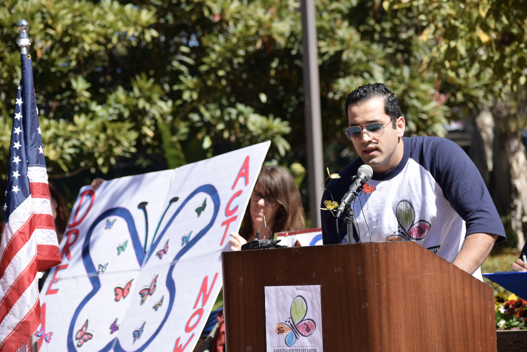 <p>From a podium, DACA recipients who make up the activist group San Diego Border Dreamers spoke on the west lawn of San Diego City College about the importance of the program and to urge lawmakers to pass a Dream Act without any concessions attached as soon as possible.</p>