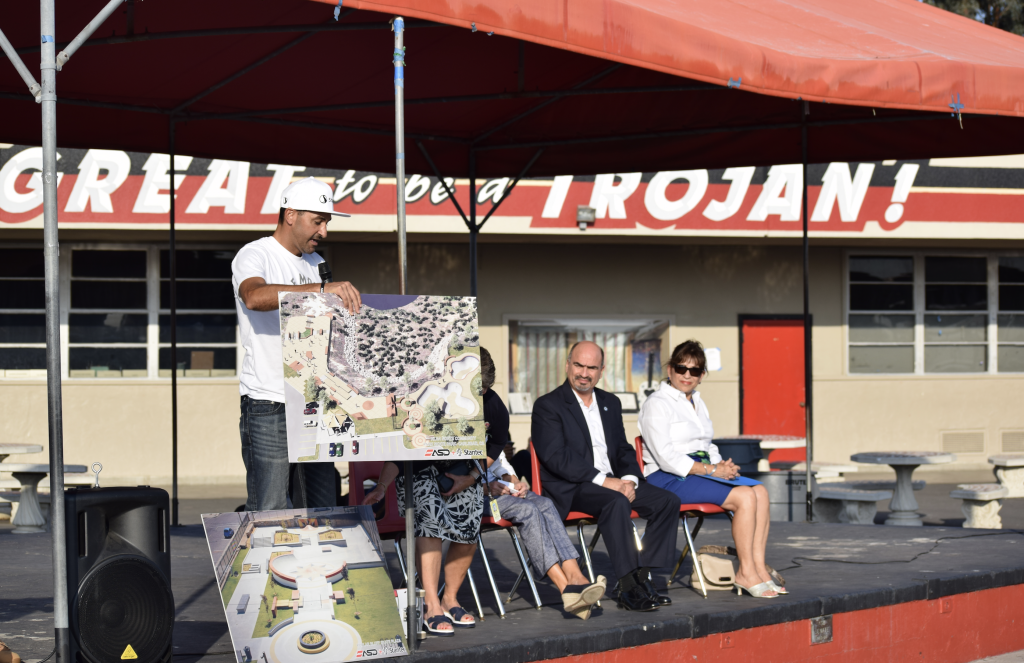 <p>En una breve ceremonia inicial, Mary Salas, alcaldesa de Chula Vista; Mike Díaz, regidor de Chula Vista; Karen Janney, superintendente del Distrito Sweetwater; y Kanten Russell, skater profesional ahora ingeniero, hablaron a los estudiantes acerca de la importancia de los estudios.</p>
