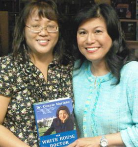<figure id="attachment_7305" aria-describedby="caption-attachment-7305" style="width: 288px" class="wp-caption alignright"><a class="highslide" onclick="return vz.expand(this)" href="https://cms.laprensa.org/sites/default/files/2010/07/IMG00288-20100707-… loading="lazy" class="size-full wp-image-7305" title="IMG00288-20100707-2056" src="https://cms.laprensa.org/sites/default/files/2010/07/IMG00288-20100707-…; alt="" width="288" height="308" srcset="https://cms.laprensa.org/sites/default/files/2010/07/IMG00288-20100707-… 288w, https://cms.laprensa.org/sites/default/files/2010/07/IMG00288-20100707-… 281w" sizes="(max-width: 288px) 100vw, 288px"></a><figcaption id="caption-attachment-7305" class="wp-caption-text">Dr. Connie Mariano, M.D. author of the book “The White House Doctor” with Marissa Acierto.</figcaption></figure>