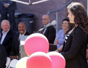 <p>Una niña de 13 años fue la imagen del poder transformador del nuevo centro de Salud y Bienestar de la Escuela Secundaria Monroe Clark durante una celebración que se llevó a cabo el 24 de octubre en el nuevo campus de City Heights.</p>