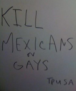 <p>“Hemos tenido diferentes actos de odio desde 2008, cuando pusieron en las paredes de los baños Mate los Niggas que significa negros. En cuanto la comunidad latina y los Gays también ha habido discriminación, yo pienso que esto debe parar todos somos iguales, no por ser de diferente color no te hace menos o más que una persona. Por eso venimos a la escuela para relacionarnos con otro tipo de gente” afirmó Camilo Caceres estudiante de Psicología.</p>