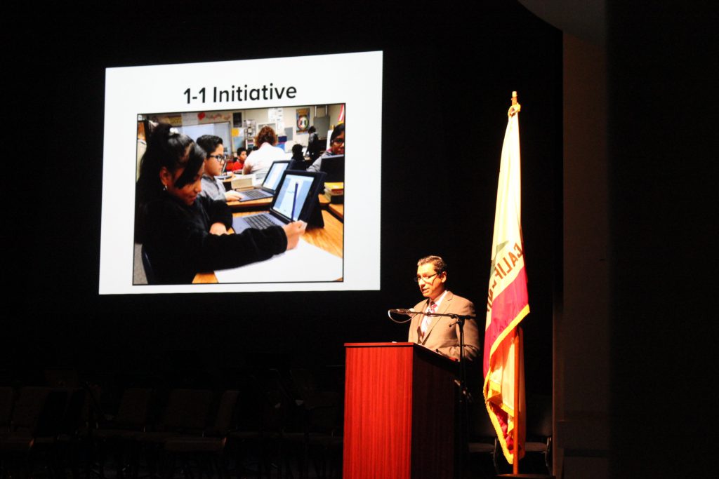 <p>El Superintendente habló sobre las nuevas iniciativas para el distrito como la nueva iniciativa de uno a uno de iPads, con la que se proporcionarán iPads a cada uno de los estudiantes del EUSD para el año 2021.</p>
