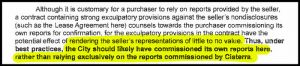 <p>“Thus, under best practices, <strong>the City should likely have commissioned its own reports here, rather than relying exclusively on the reports commissioned by Cisterra</strong>,” the memo concluded. The lawyers writing the memo used bold text to highlight especially important language in the document, as in the actual text of the document shown above.</p>
