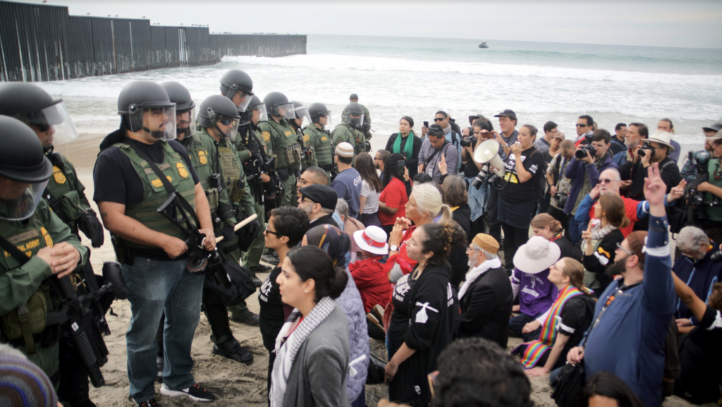 <p>Close to 400 faith leaders initiated the campaign with a 3-mile procession along the now-muddy Tijuana River Valley trail towards the beach, then proceeded in silence across the sand until they were almost to the border fence, where they were met by dozens of Border Patrol officers in riot gear.</p>