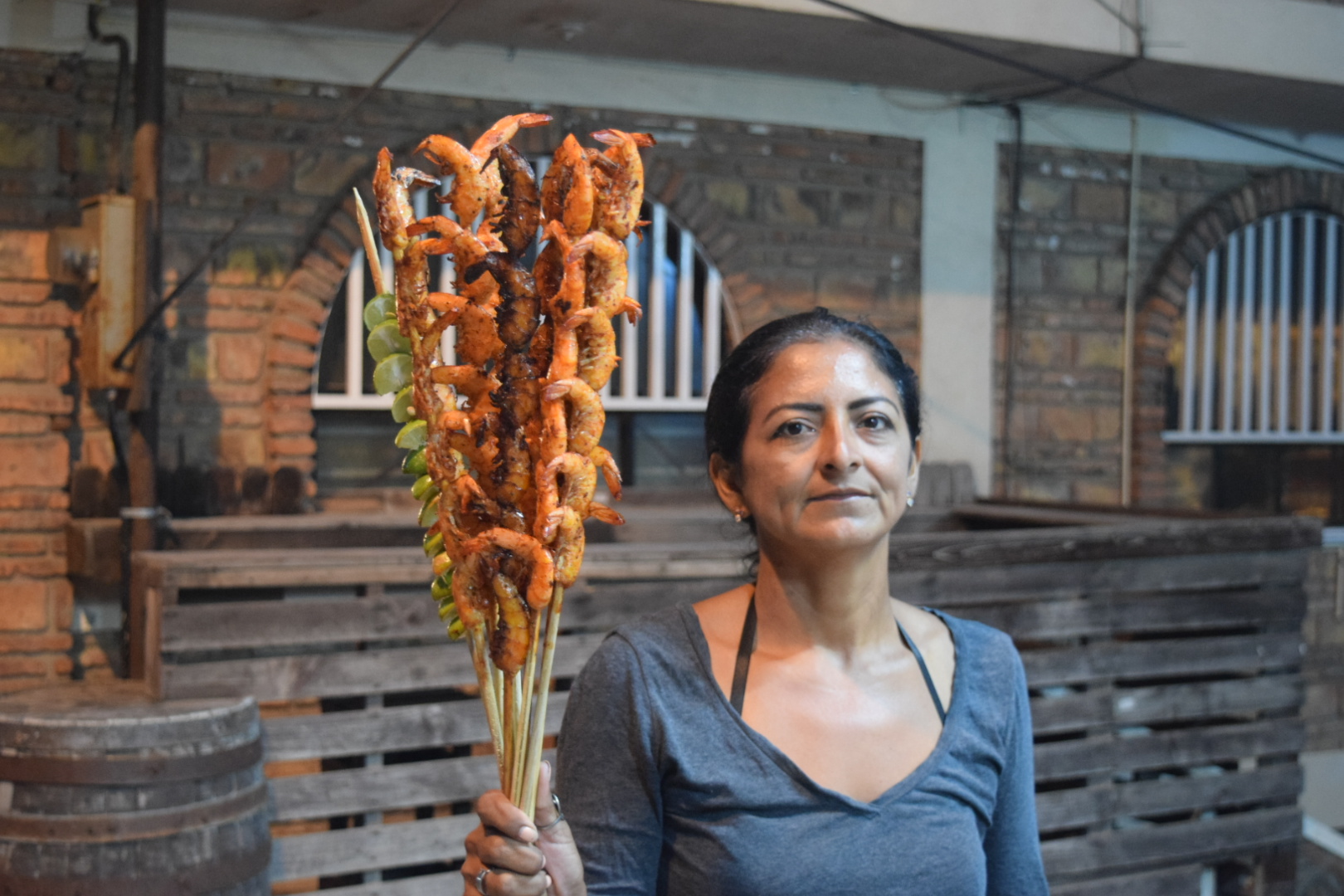 <p>For each skewer sold at a price of 50 pesos ($2.50), she takes a 10-peso cut (about 50 cents).<br>