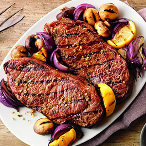 Grecian Top Loin Steaks and Mushroom Kabobs