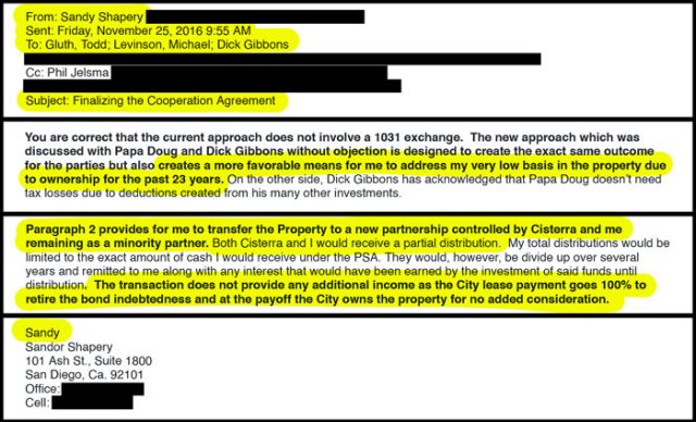 <p><span style="font-weight: 400;">A 2016 email came to light this week revealing the original owner may still have an undisclosed interest in the building in violation of the City’s Charter that requires full disclosure of all parties “directly or indirectly involved” in the contract -and City Attorney Mara Elliott may have known since last December.</span></p>