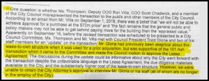 <p>Section “<span style="text-decoration: underline;">II. B. The Financial Structure of the Acquisition</span>“ includes a detailed analysis of the total cost of the building lease deal that binds the City to make over $128 million in payments during the 20-year term. The section explained for the first time that the building lease included $19.5 million for “<span style="text-decoration: underline;"><em>closing costs, appraisal, and other due diligence costs, legal fees, special risk insurance, LLC costs, loan fees, underwriting and banking fees, loan fees and “Cisterra profit</em></span>” that clarified that “<span style="text-decoration: underline;"><em>the total acquisition price to the City is close to $92M.</em></span>”</p>
