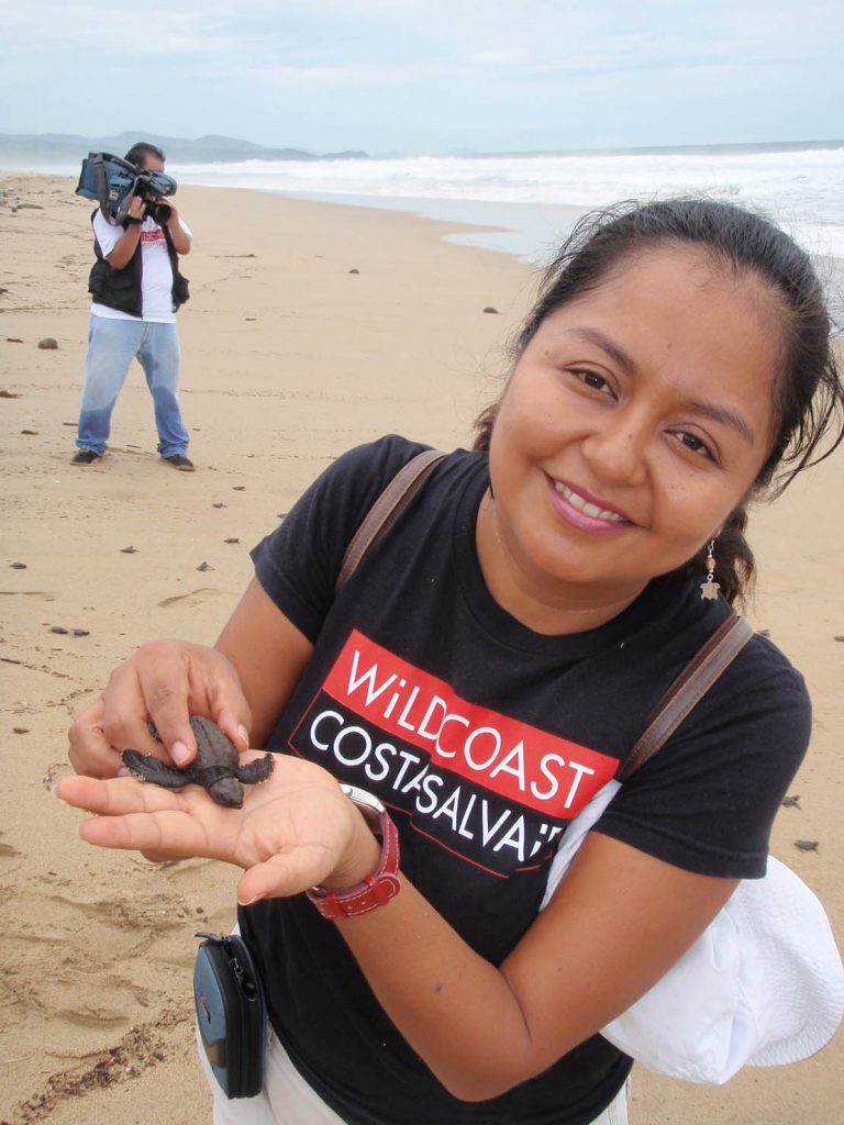 <p>Natalia Parra del Ángel, Coordinadora Pacífico Sur de la organización ambiental Costasalvaje, entregó playeras, un espectacular con la top model Dorismar, comics y calcomanías con mensajes ambientales al personal del campamento La Tortuga Feliz y al Comisariado Ejidal de Juluchuca Pedro Chávez Vargas, para que esos impresos, ayuden a fomentar entre la población la preservación de la tortuga marina, especie en peligro de extinción.</p>