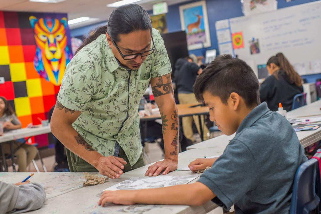 <p>Flores met Camarillo during a field trip to Chicano Park as part of research for a recent art exhibit allowing sixth, seventh, and eighth-grade students to draw their inspiration from four community leaders of Chicano Park and Logan Heights.</p>