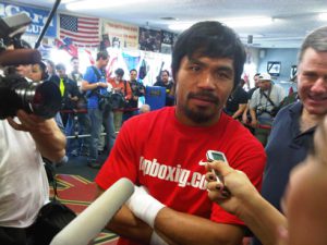 <figure id="attachment_11896" aria-describedby="caption-attachment-11896" style="width: 328px" class="wp-caption alignright"><a class="highslide" onclick="return vz.expand(this)" href="/sites/default/files/2011/04/IMG01467-20110420-1507.jpg"><strong><img loading="lazy" class="size-full wp-image-11896 " title="IMG01467-20110420-1507" src="https://cms.laprensa.org/sites/default/files/2011/04/IMG01467-20110420-…; alt="" width="328" height="246" srcset="https://cms.laprensa.org/sites/default/files/2011/04/IMG01467-20110420-… 410w, https://cms.laprensa.org/sites/default/files/2011/04/IMG01467-20110420-… 300w" sizes="(max-width: 328px) 100vw, 328px"></strong></a><figcaption id="caption-attachment-11896" class="wp-caption-text">Manny Pacquiao during a round of questions on the outer ringside. Photo By Marissa Acierto SCCPress.com</figcaption></figure>