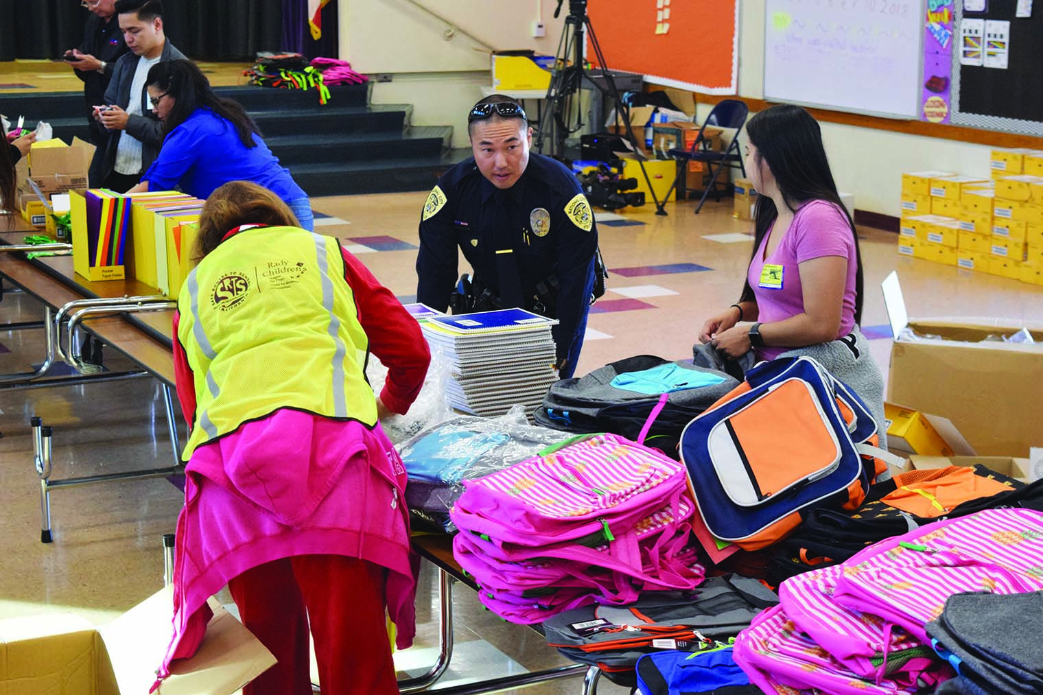 <p>Children at elementary schools in National City received new backpacks and school supplies as part of the National City Police Department’s fourth annual school supply giveaway this week. </p>