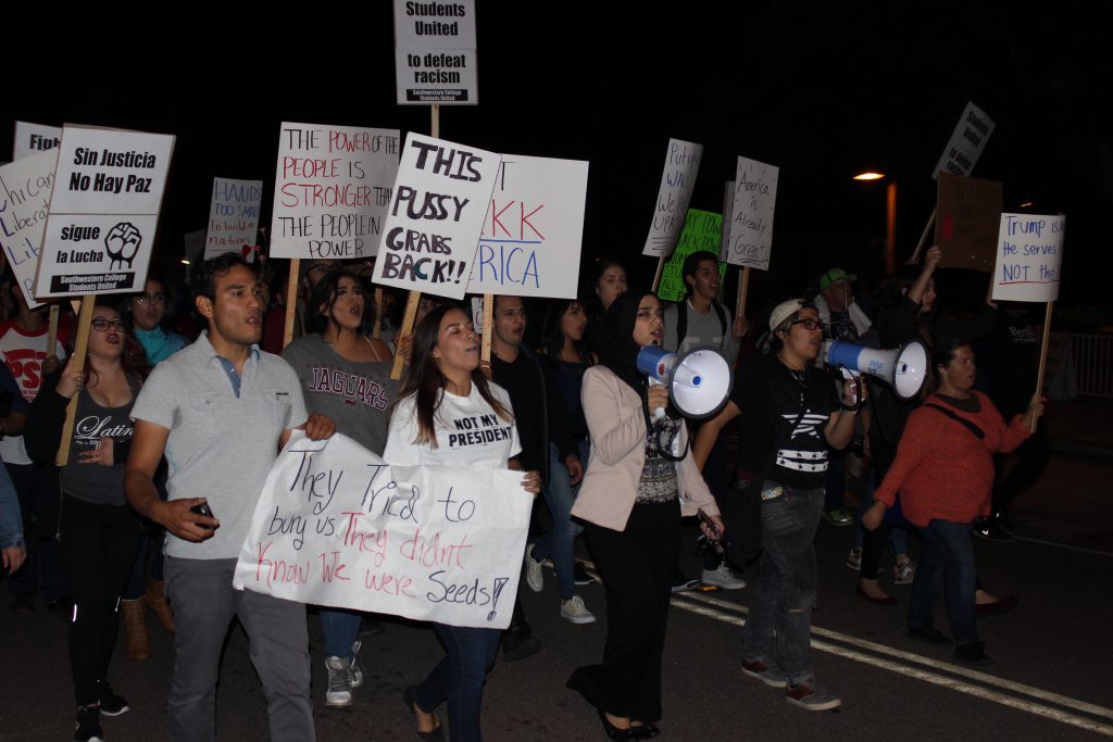 <p>Dozens of Southwestern College students rallied and marched at the Chula Vista campus to protest against President-elect Donald Trump’s victory in the polls on Thursday, November 17.</p>