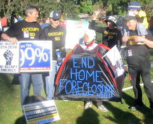 As early as 2010, this Occupier, joined with Congressman Bob Filner at the home of a Chula Vista resident’s home that was in the final day of foreclosure and eviction. Just the presence of several hundred supporters and the local press, made the Bank in question that day call off the Sheriffs charged to evict the home owner, and reset the entire foreclosure process.
