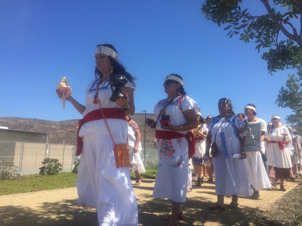 <p>Rodriguez sang in Kumeyaay and encouraged those present to help those holding immigrants back understand “What they are doing and that they must stop. I ask this of you in the name of the creator.”</p>