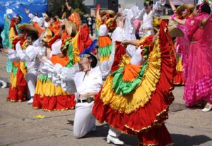 También la interpretación de un ramillete de canciones folclóricas y de lirica popular mexicana dio paso a decenas de bailarinas ataviadas de vistosos y coloridos vestidos a la usanza mexicana, sumándose otros bailarines más, pertenecientes al Grupo Folklórico YIMA, dirigidos por Martha Gómez y Jorge Zamudio, también la reina del carnaval desfiló saludando efusivamente al público.