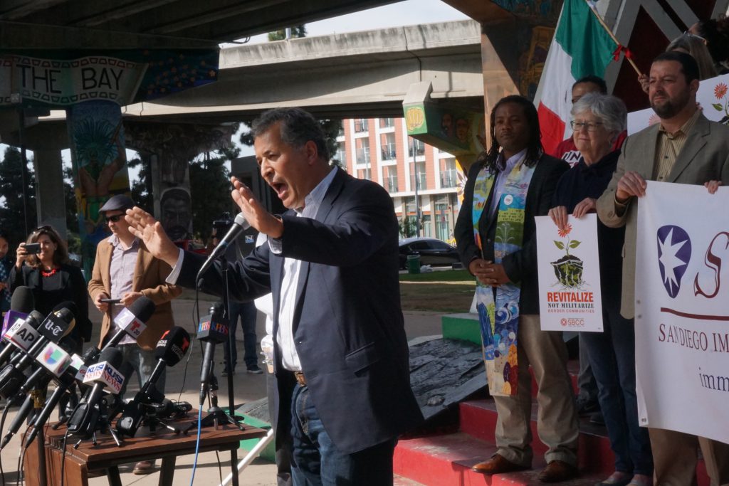 <p>Under the colorful murals of Chicano Park, U.S. Rep. Juan Vargas, Councilmember Georgette Gomez, activist and DACA recipient Ali Torabi, and others spoke to reporters on Monday, March 12 to demonstrate that the border city does not support a construction of a wall.</p>
