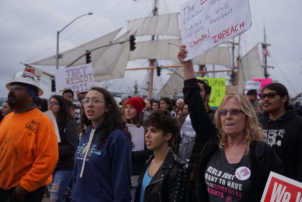 <figure id="attachment_45423" aria-describedby="caption-attachment-45423" style="width: 300px" class="wp-caption alignright"><a href="https://cms.laprensa.org/sites/default/files/2018/03/TrumpProtest.jpg">… loading="lazy" class="wp-image-45423 size-medium" src="https://cms.laprensa.org/sites/default/files/2018/03/TrumpProtest-300x2…; alt="" width="300" height="200" srcset="https://cms.laprensa.org/sites/default/files/2018/03/TrumpProtest-300x2… 300w, https://cms.laprensa.org/sites/default/files/2018/03/TrumpProtest-1024x… 1024w" sizes="(max-width: 300px) 100vw, 300px"></a><figcaption id="caption-attachment-45423" class="wp-caption-text">Close to 150 people walked from Waterfront Park to the federal building in downtown San Diego following President Donald Trump’s visit to the border wall prototypes. (Andrea Lopez-Villafaña/La Prensa San Diego)</figcaption></figure>