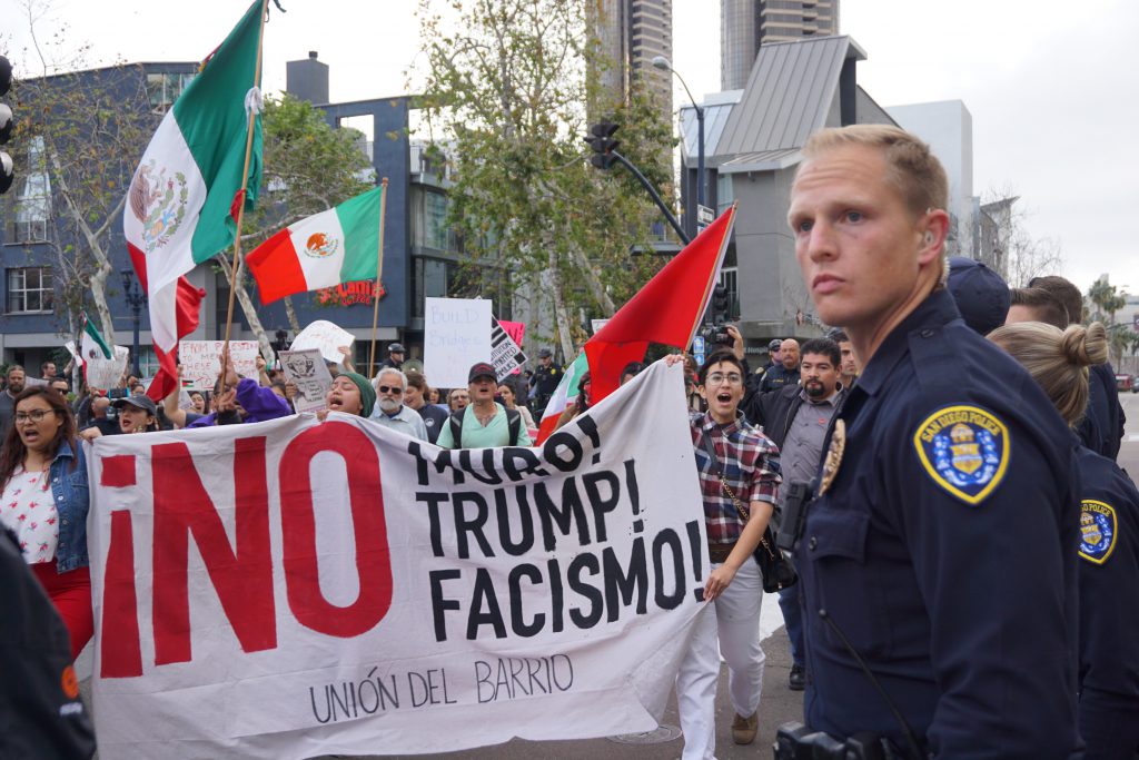 <figure id="attachment_45421" aria-describedby="caption-attachment-45421" style="width: 300px" class="wp-caption alignright"><a href="https://cms.laprensa.org/sites/default/files/2018/03/TrumpProtestinSanD… loading="lazy" class="wp-image-45421 size-medium" src="https://cms.laprensa.org/sites/default/files/2018/03/TrumpProtestinSanD…; alt="" width="300" height="200" srcset="https://cms.laprensa.org/sites/default/files/2018/03/TrumpProtestinSanD… 300w, https://cms.laprensa.org/sites/default/files/2018/03/TrumpProtestinSanD… 1024w" sizes="(max-width: 300px) 100vw, 300px"></a><figcaption id="caption-attachment-45421" class="wp-caption-text">San Diego Police Department officers guided protesters as they walked on the streets of downtown San Diego on Monday, March 12. (Andrea Lopez-Villafaña/La Prensa San Diego)</figcaption></figure>