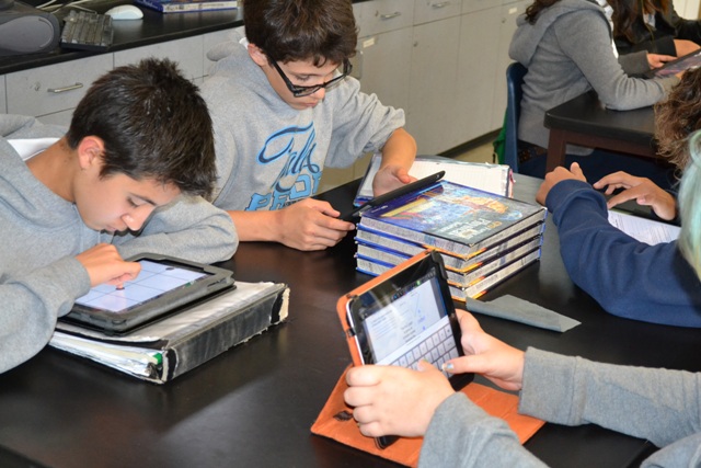 In Benjamin Black’s 8th grade science class at Hilltop Middle School, students don’t get ready for class by sharpening their pencils, opening their textbooks and preparing to take notes. Instead, they reach for their iPads, power up their devices and make sure that they are logged on to the school’s Wi-Fi.