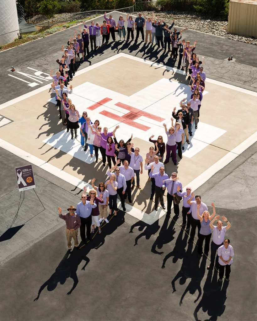 <p>In an effort to raise awareness for cancer and to support patients and loved ones affected, Sharp Grossmont Hospital staff wore lavender-colored shirts and formed a giant human cancer ribbon on the hospital’s helicopter pad on Thursday, Feb. 1.</p>