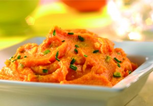 2. Place vegetables, broth and butter into food processor. Cover and process until mixture is smooth. Add brown sugar, black pepper and chopped chives. Cover and process until mixture is just combined. Garnish with additional chives.