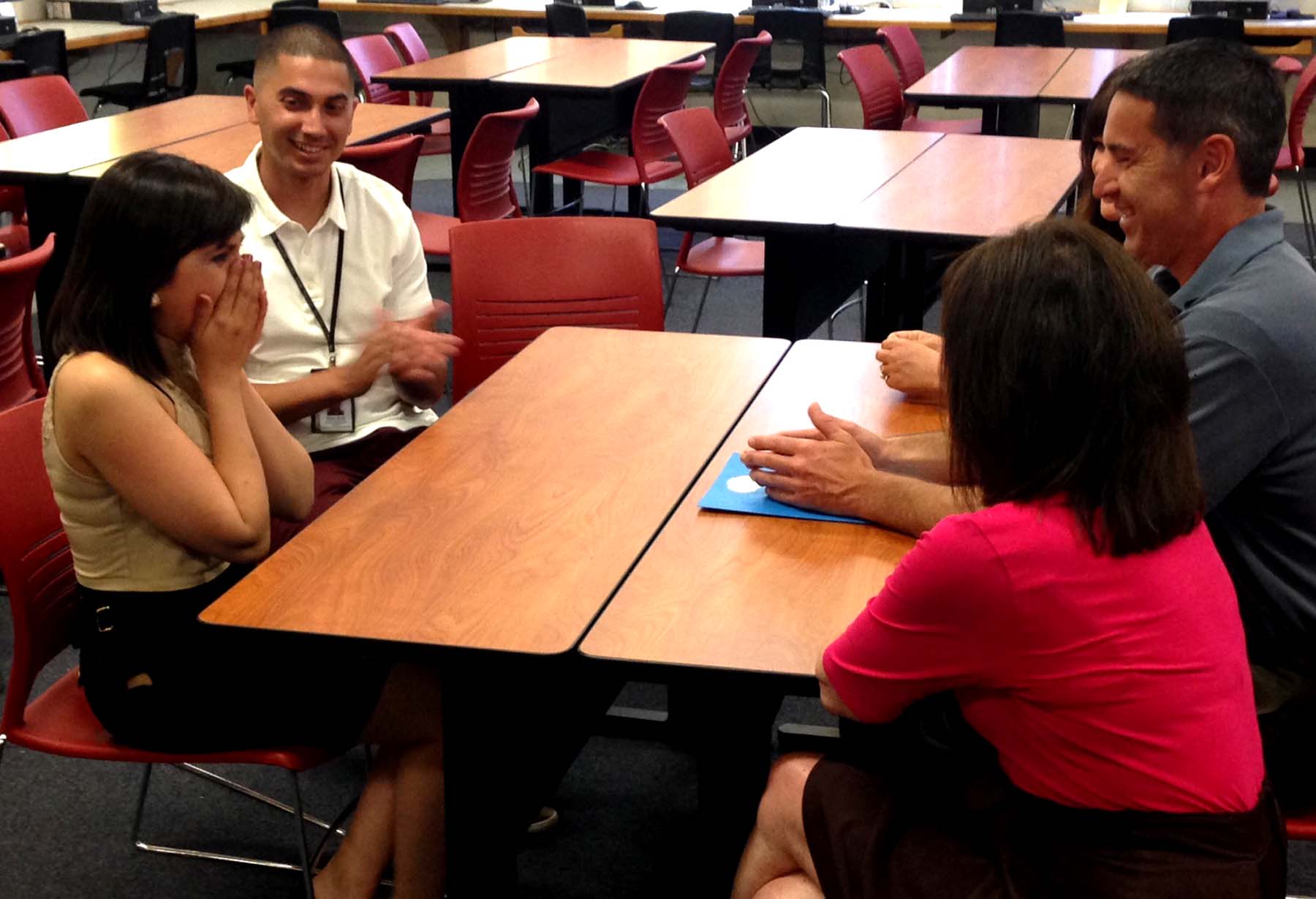 <p>Norma was one of four Castle Park High School students who were surprised on April 29th with a sponsorship through A Bridge for Kids, which is working with social services agency South Bay Community Services to identify, mentor, and help achieve academic success among teenagers in the Castle Park neighborhood of Chula Vista. The four students selected thought that they were in the library for a second round of interviews for the sponsorships. Instead, they got the surprise of their lives.</p>