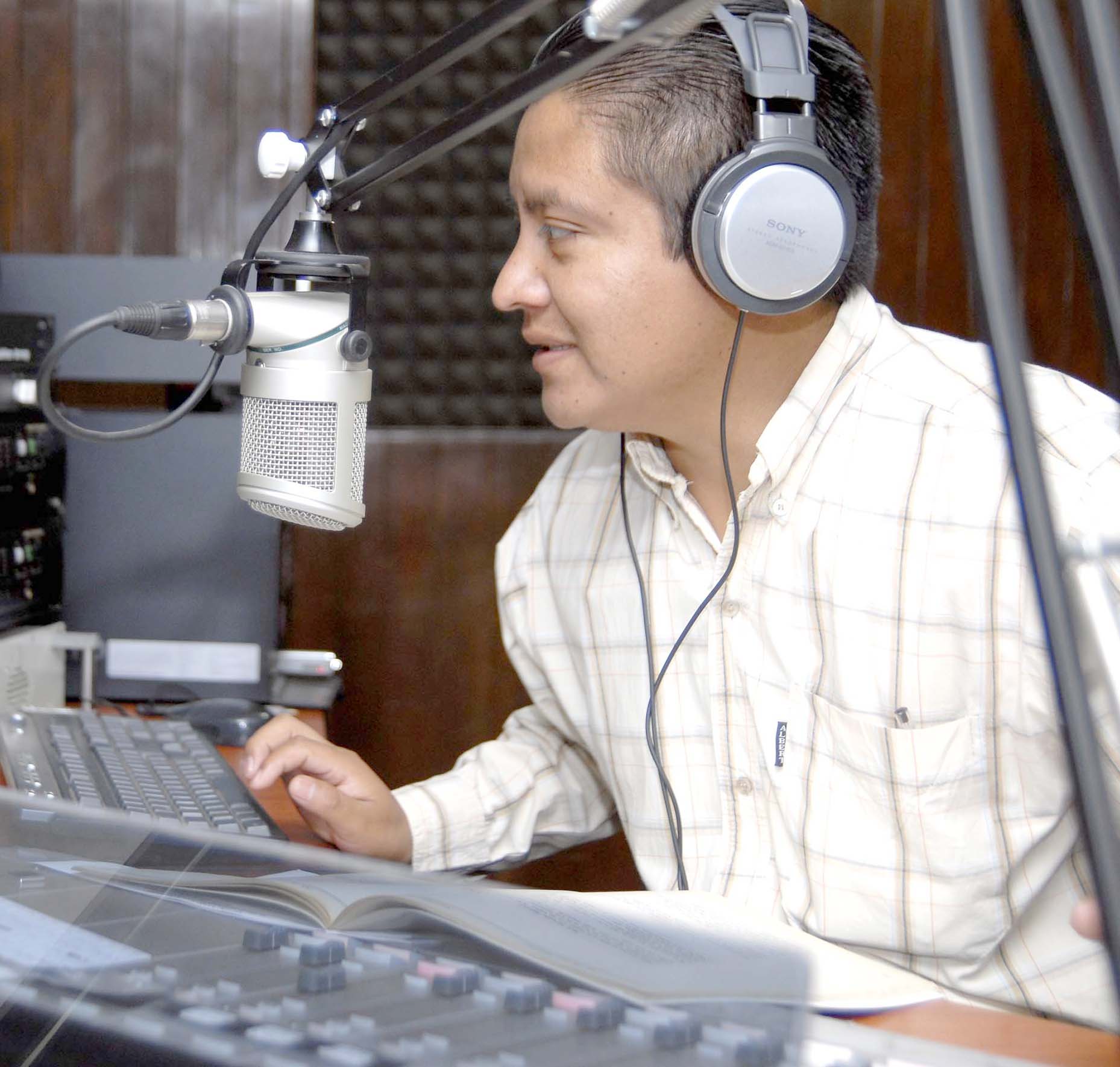 — “Cuando llegué aquí no dominaba la lengua otomí, pero la gente me ayudó a enriquecer el vocabulario”, dijo Alvaro Esteban Valencia, de 28 años, locutor de XETUMI, 1010 AM, Radio La Voz de la Sierra Oriente, ubicada en Tuxpan, Michoacán. “¿Qué me gusta de lo que hacemos? Todo! Somos locutores, productores… La gente nos llama y nos agradece por el servicio!”
